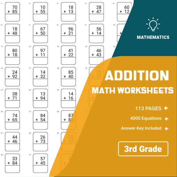 100 Pages Of Addition Math Worksheets For 3rd Grade